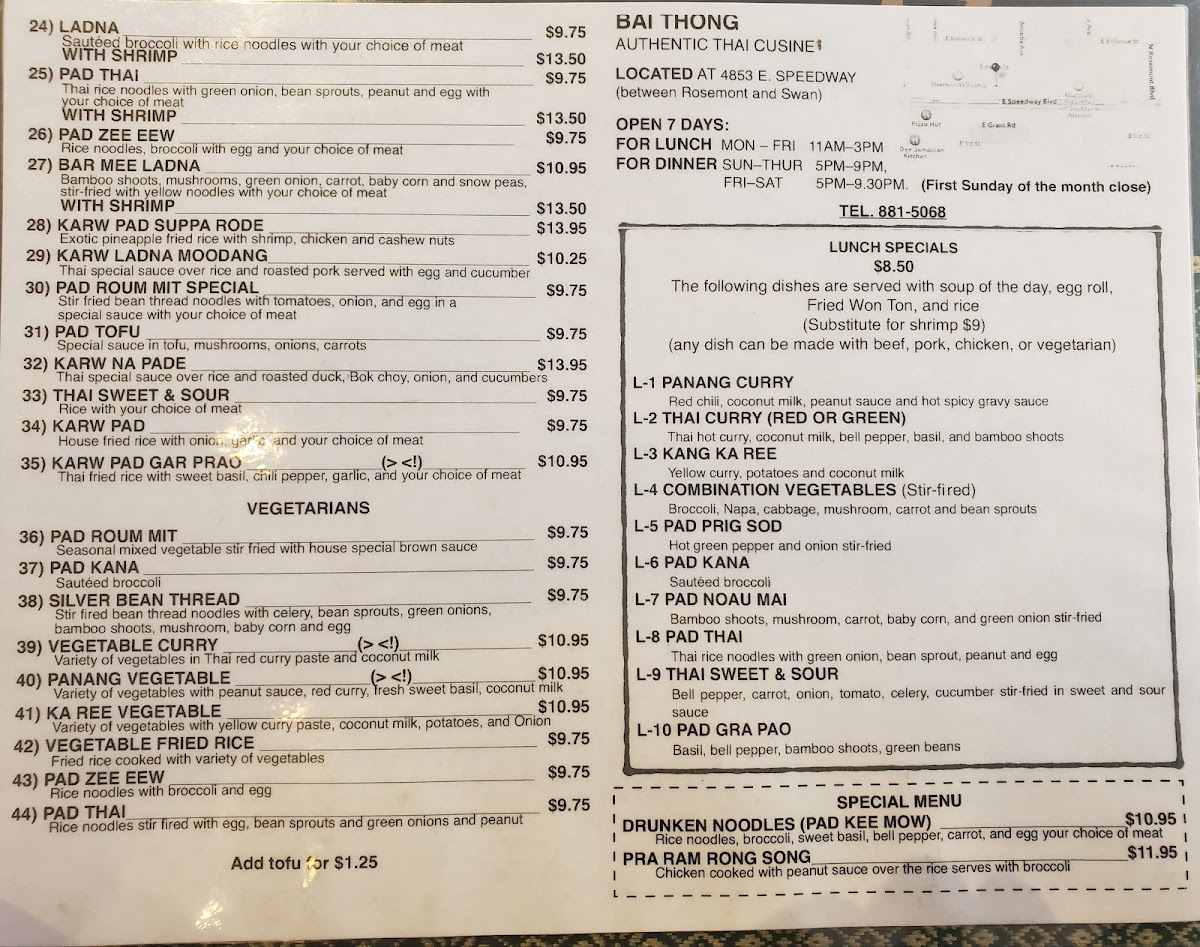 If you’re in Tucson and craving the vibrant, rich flavors of Thailand, Bai Thong is your go-to destination. Nestled at 4853 E Speedway Blvd, this charming Thai restaurant offers an inviting and cozy atmosphere where every dish is a celebration of authentic cuisine.